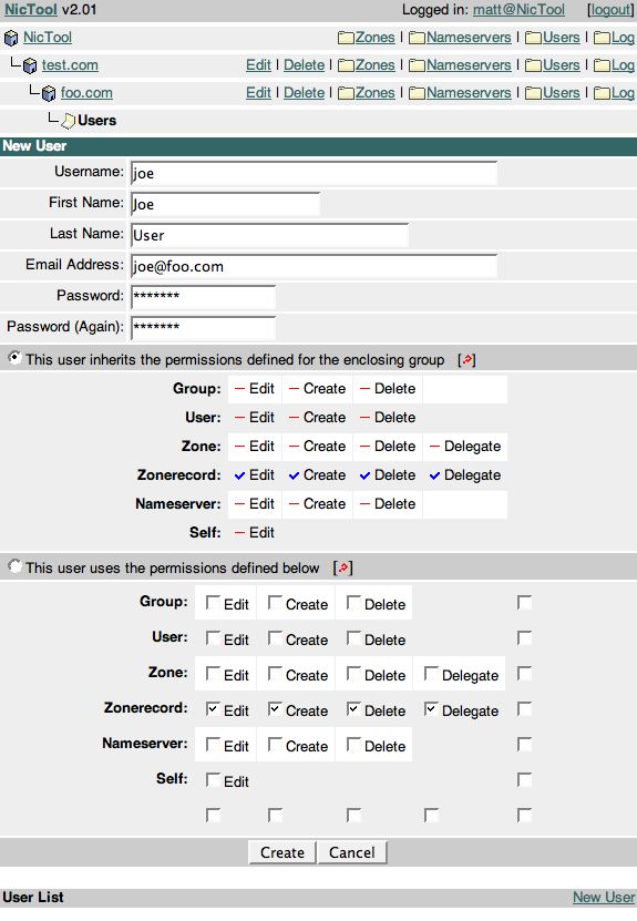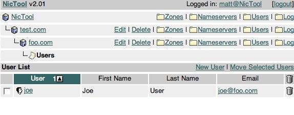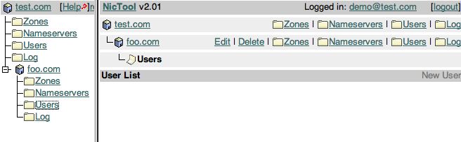 2. Click on the Users folder in the left NicTool frame. If you have sub-groups defined, first open the desired sub-group and then click on the Users folder within that sub-group.
