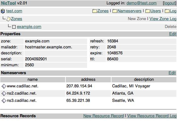 1. Log in to NicTool